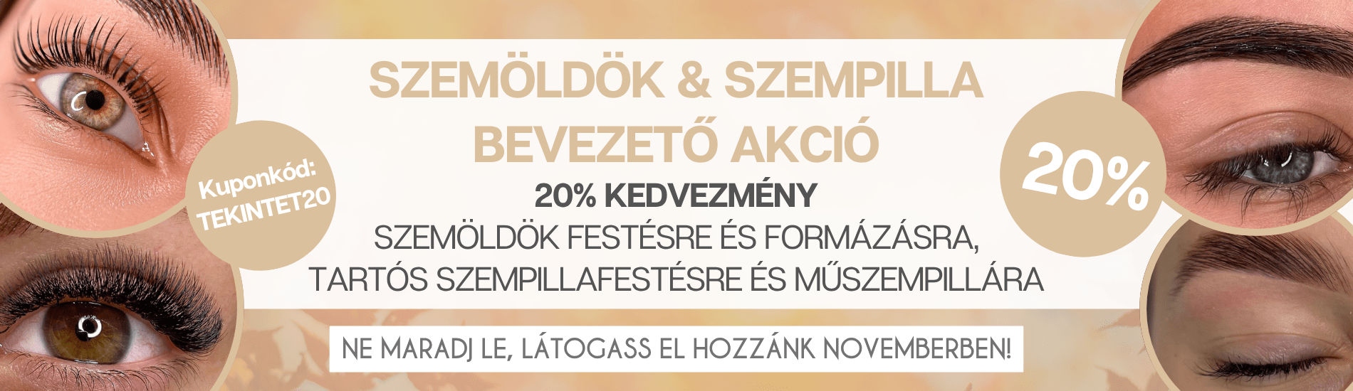 Novemberben még inkább megéri kipróbálni, hiszen most 20% kedvezményt adunk minden vendégnek az első szemöldök- vagy szempilla styling szolgáltatás árából!